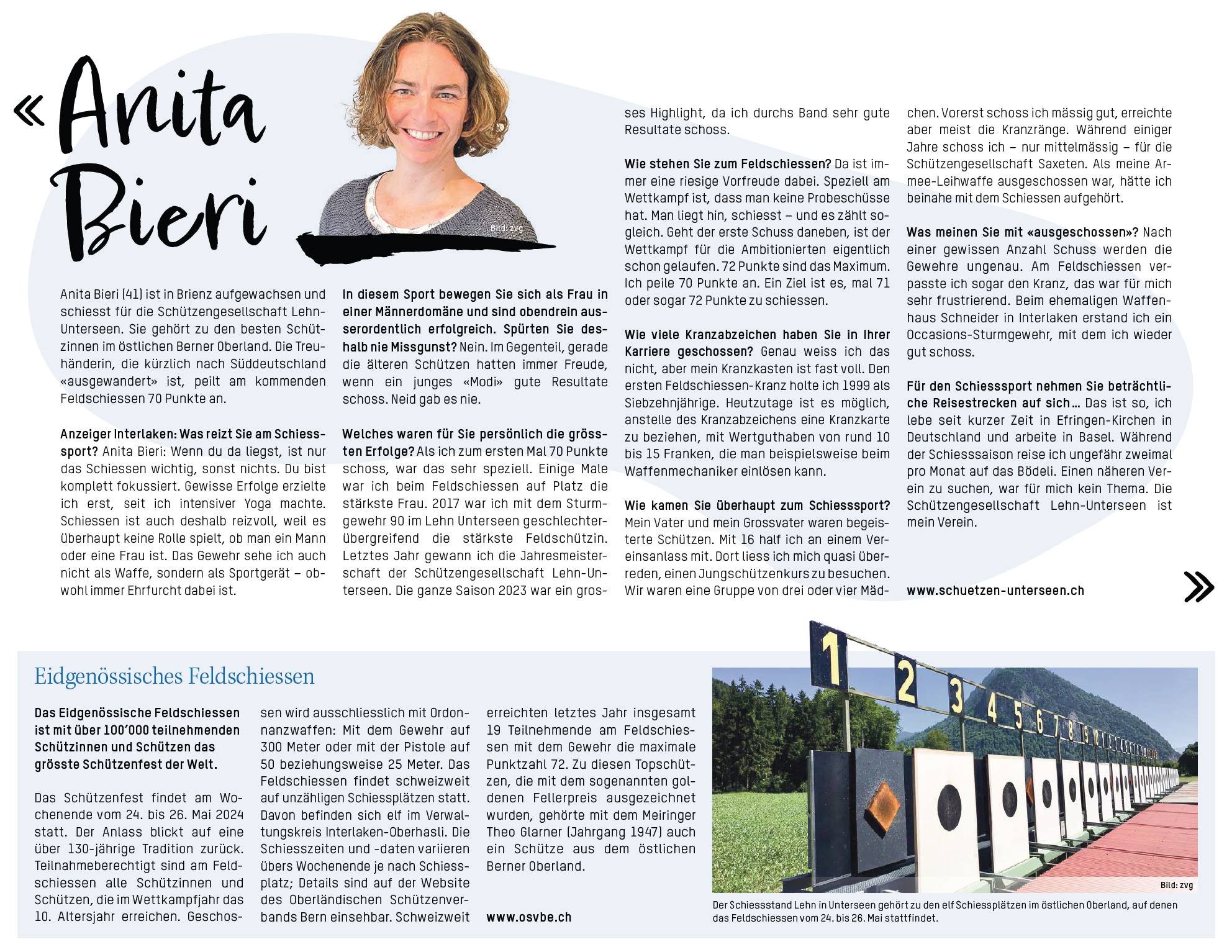 Anzeiger Interlaken, Interview mit Anita Bieri